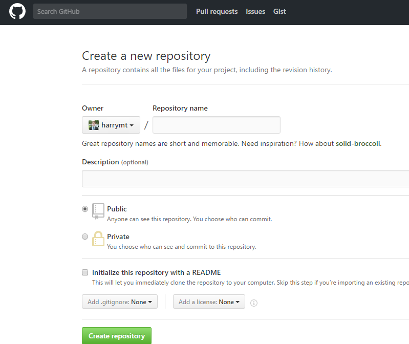 When you create a repo, the name you choose will be the URL of the website, so choose something sensible.